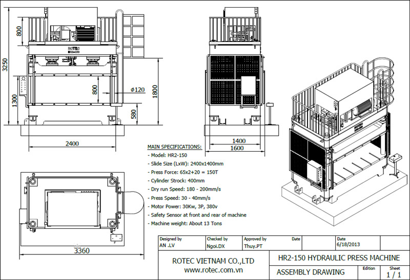 Lực ép tạo ra được rất lớn lên đến 400 tấn, Kích thước bàn ép lên đến 1200x1200 mm. Vì vậy kích thước chi tiết máy có thể ép rất đa dạng.